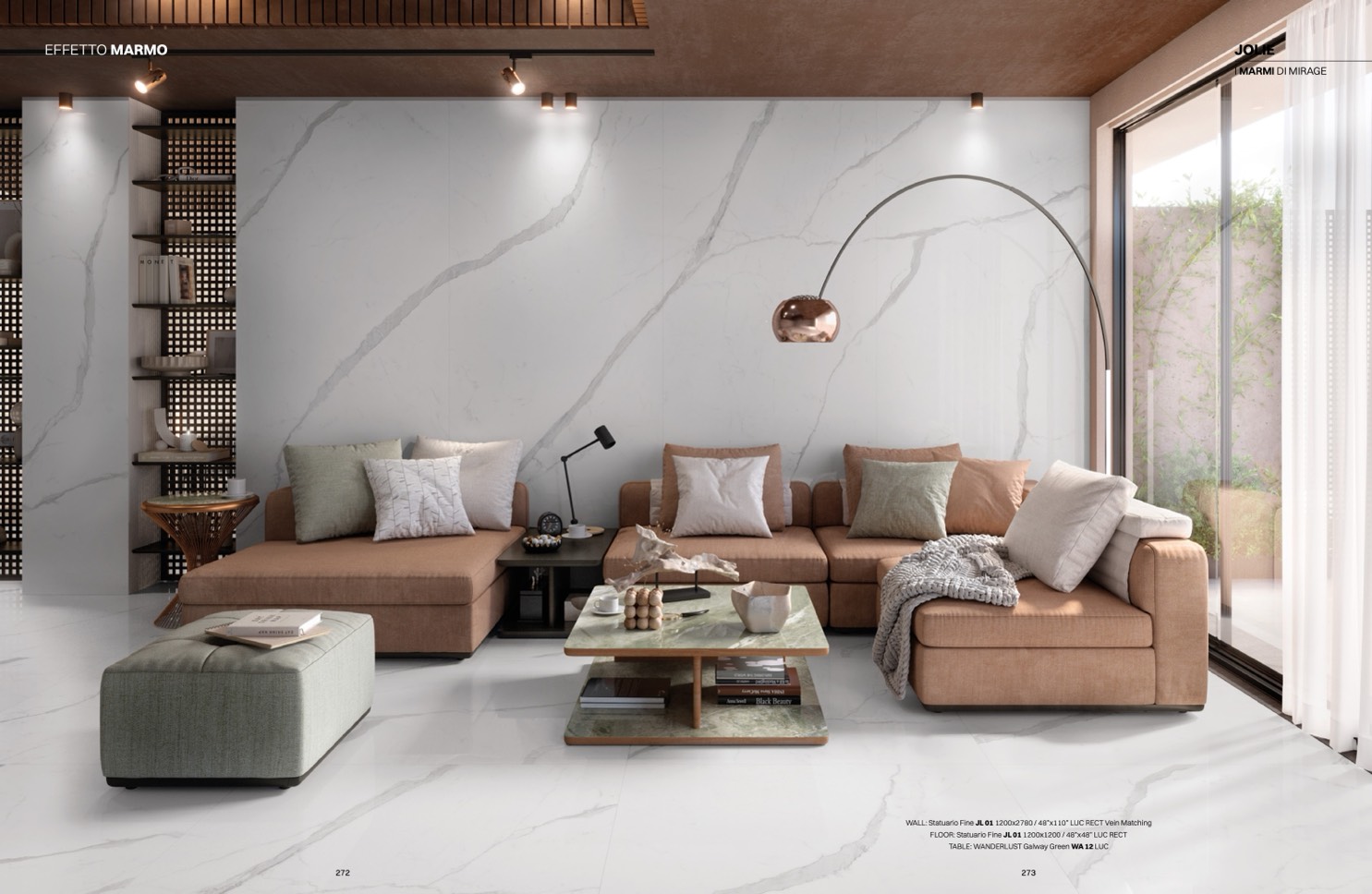 FLOOR: Statuario Fine JL 01 1200x1200 / 48”x48” LUC RECT
