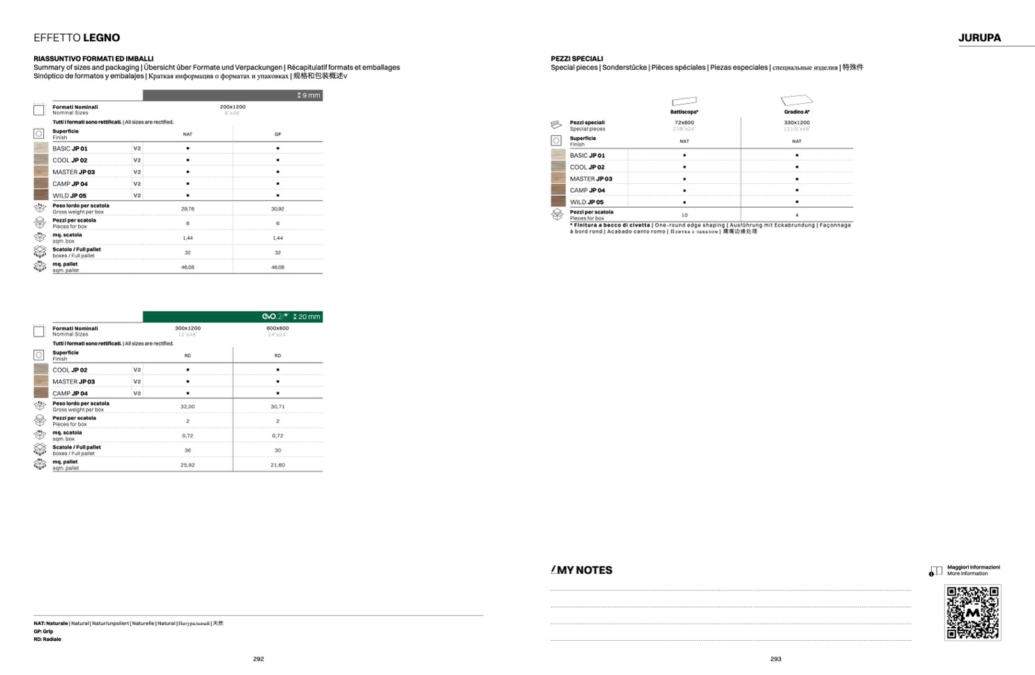 Sinóptico de formatos y embalajes | Краткая информация о форматах и упаковках | 规格和包装概述v