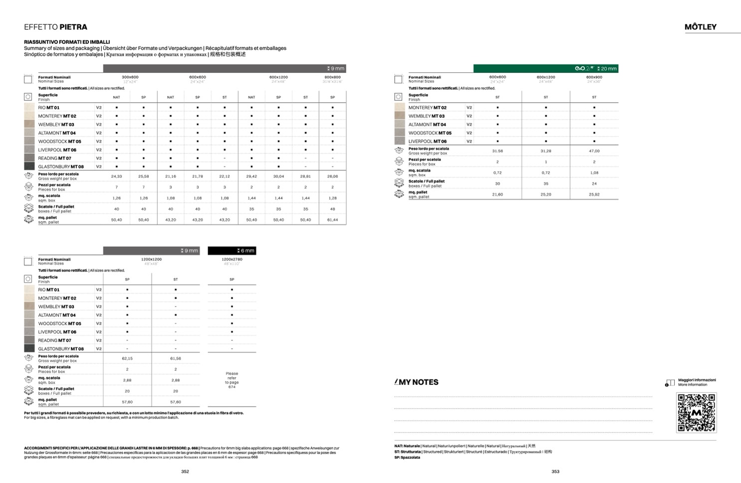 Sinóptico de formatos y embalajes | Краткая информация о форматах и упаковках | 规格和包装概述