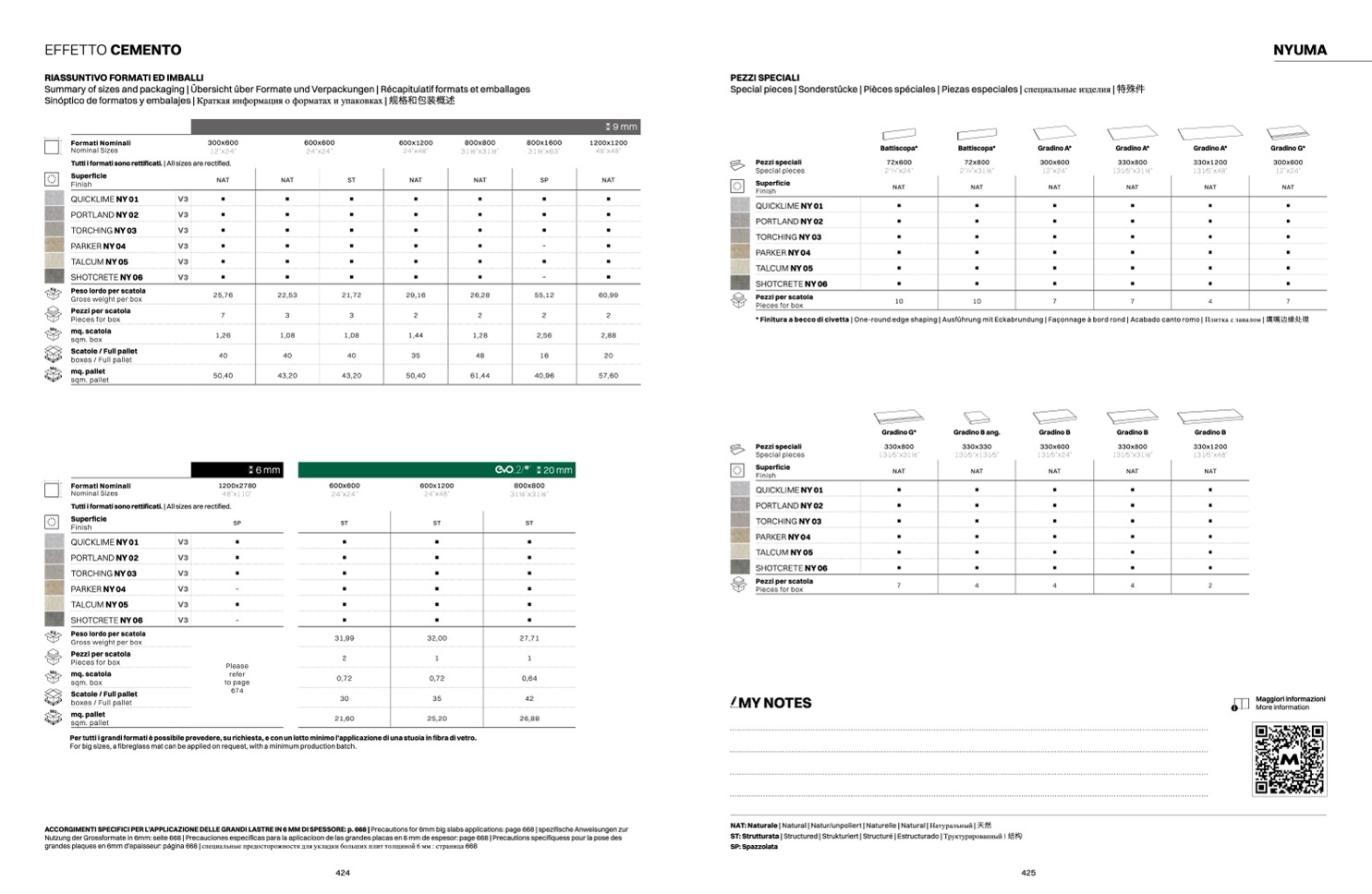 Sinóptico de formatos y embalajes | Краткая информация о форматах и упаковках | 规格和包装概述