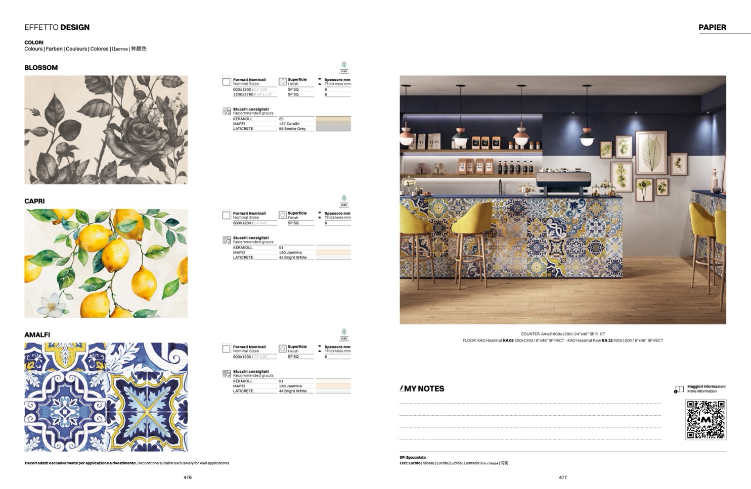 Decori adatti esclusivamente per applicazione a rivestimento. Decorations suitable exclusively for wall applications.