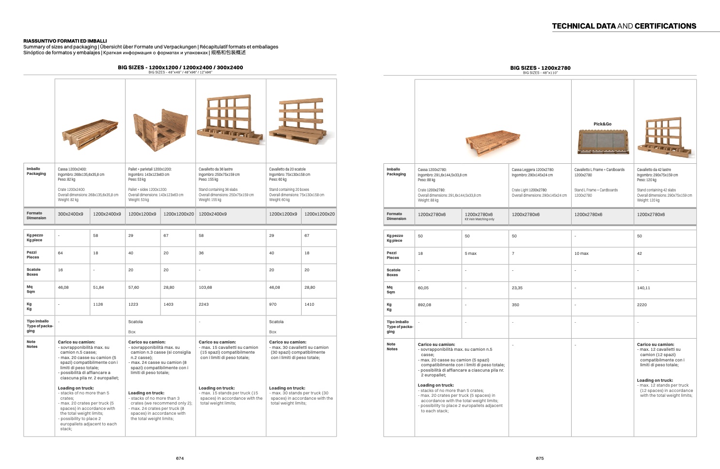 Sinóptico de formatos y embalajes | Краткая информация о форматах и упаковках | 规格和包装概述