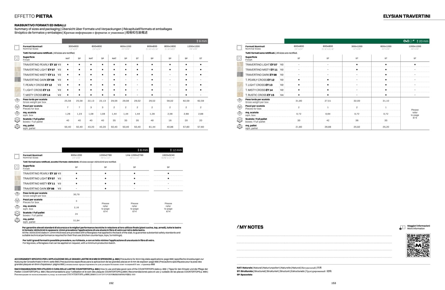 Nutzung der Grossformate in 6mm: seite 668 | Precauciones especificas para la aplicacioon de las grandes placas en 6 mm de espesor: page 668 | Precautions specifiquess pour la pose des