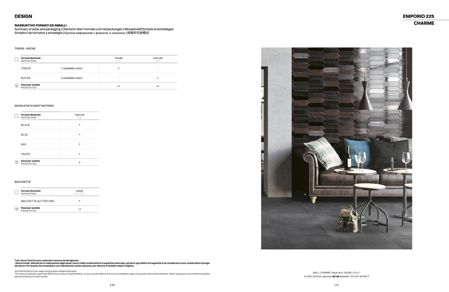 Tutti i decori Charme sono realizzati in tecnica semiartigianale.