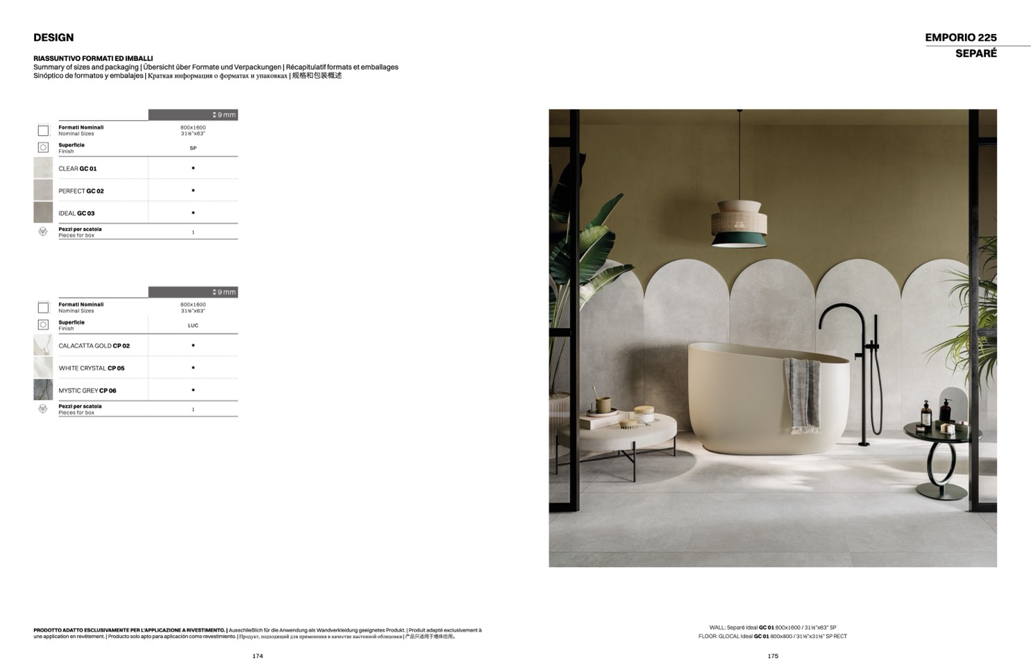 PRODOTTO ADATTO ESCLUSIVAMENTE PER L’APPLICAZIONE A RIVESTIMENTO. | Ausschließlich für die Anwendung als Wandverkleidung geeignetes Produkt. | Produit adapté exclusivement