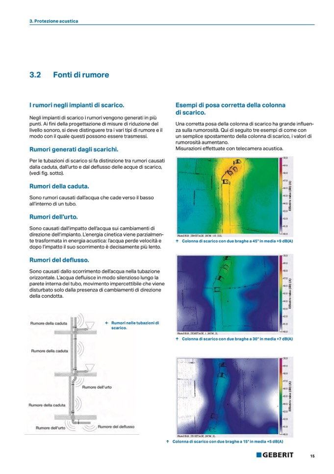 Per le tubazioni di scarico si fa distinzione tra rumori causati