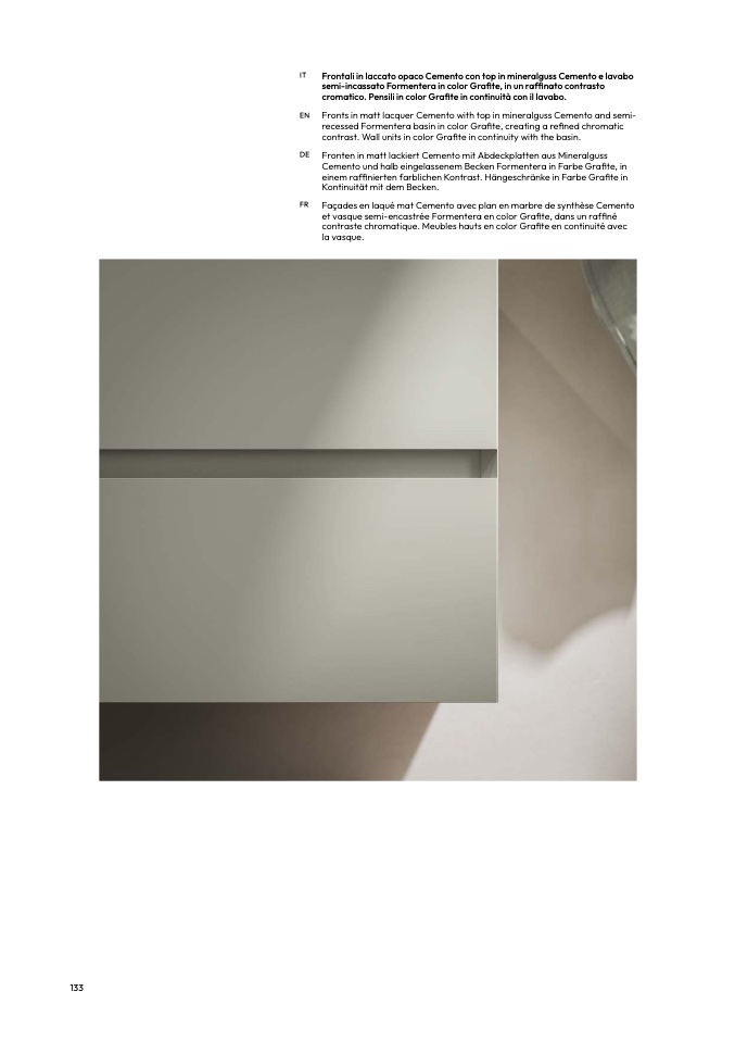 Fronts in matt lacquer Cemento with top in mineralguss Cemento and semi