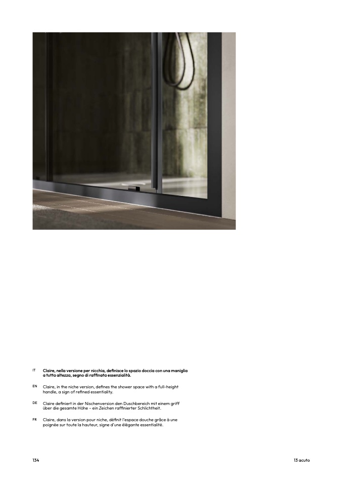 Claire, nella versione per nicchia, definisce lo spazio doccia con una maniglia