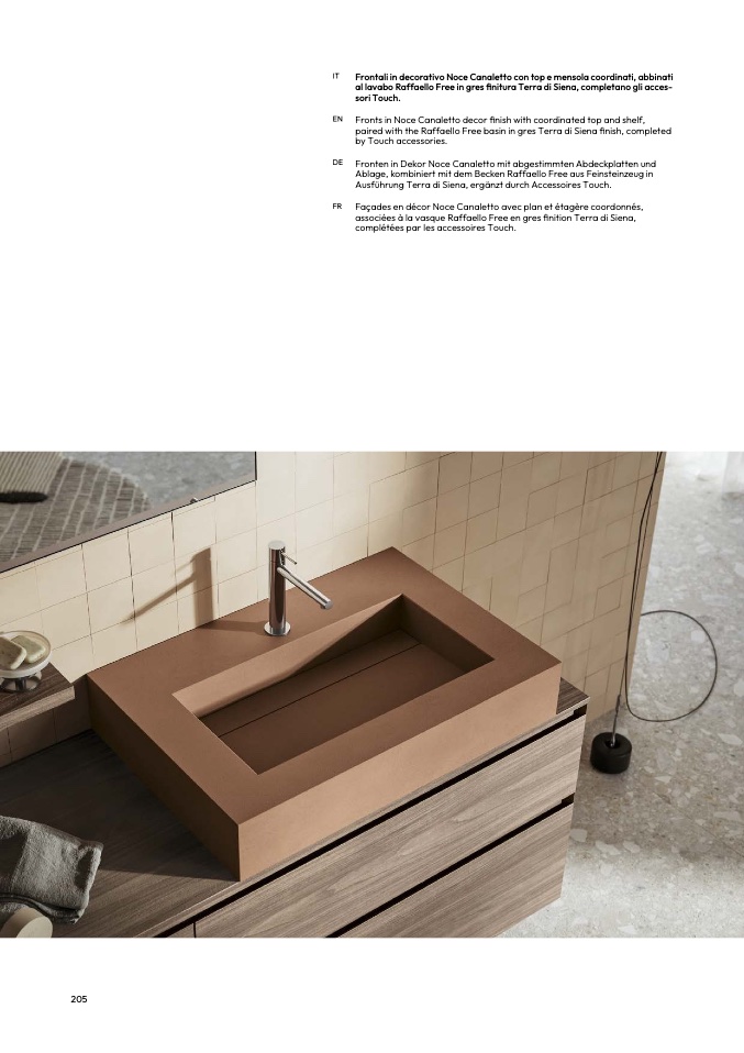 paired with the Raffaello Free basin in gres Terra di Siena finish, complete