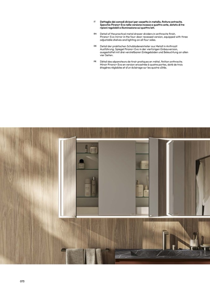 Miroir Pirano+ Evo en version encastrée à quatre portes, doté de trois