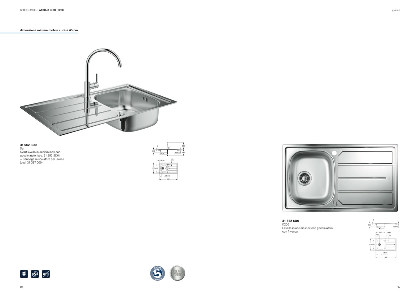 K200 lavello in acciaio inox con