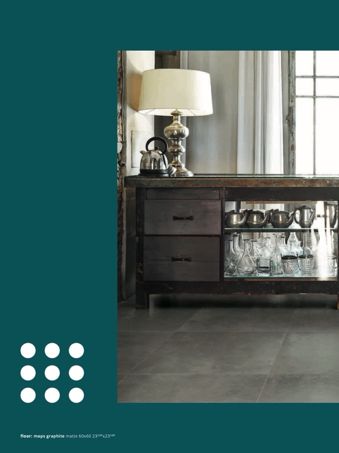 floor: maps graphite matte 60x60 235/8”x235/8”