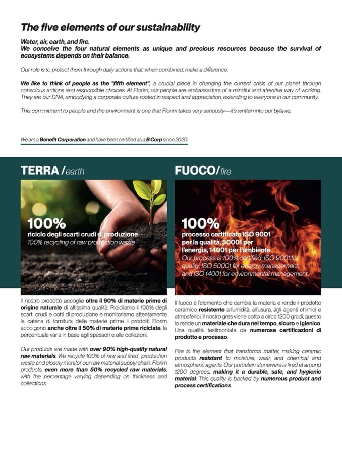 This commitment to people and the environment is one that Florim takes very seriously—it’s written into our bylaws