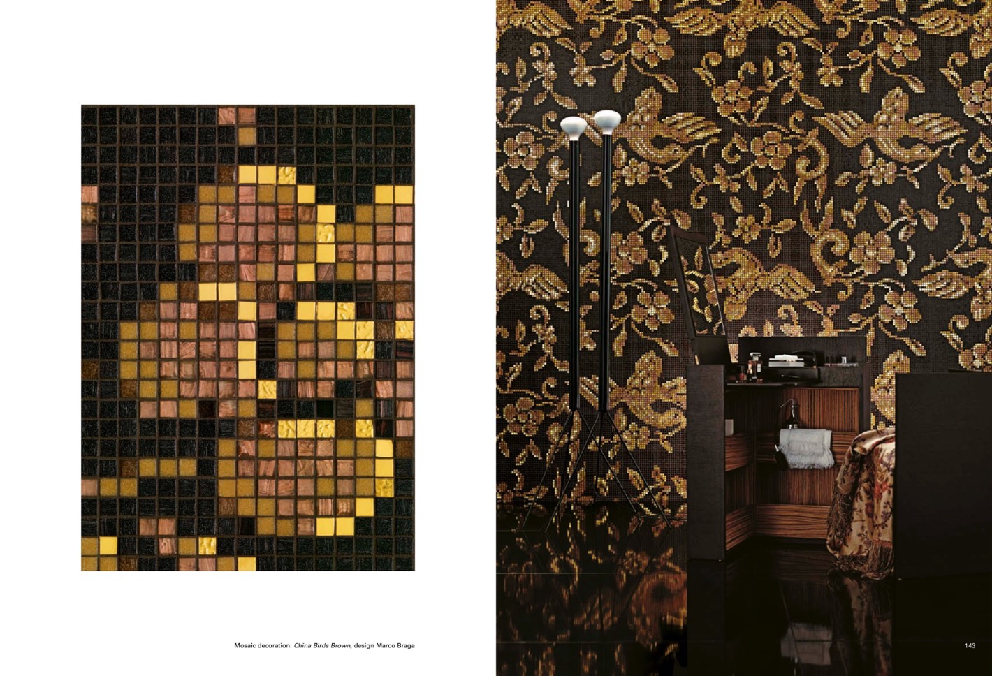 Mosaic decoration: China Birds Brown, design Marco Braga