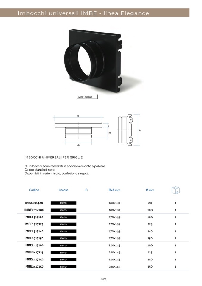 Gli imbocchi sono realizzati in acciaio verniciato a polvere.