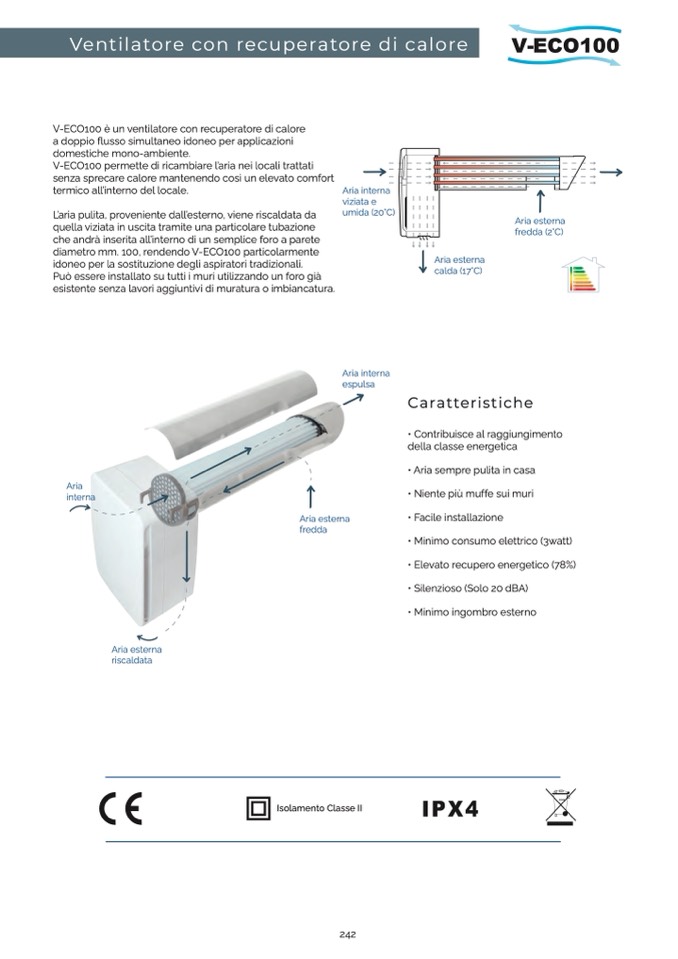 V-ECO100 è un ventilatore con recuperatore di calore