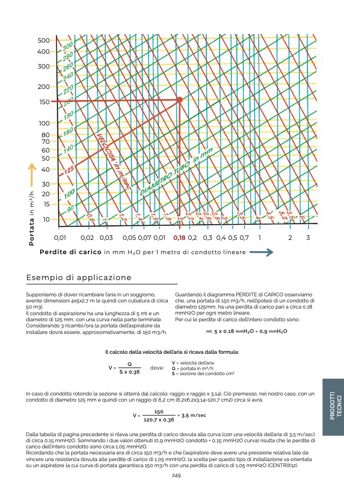 su un aspiratore la cui curva di portata garantisca 150 m3/h con una perdita di carico di 1,05 mmH2O (CENTRIX12)