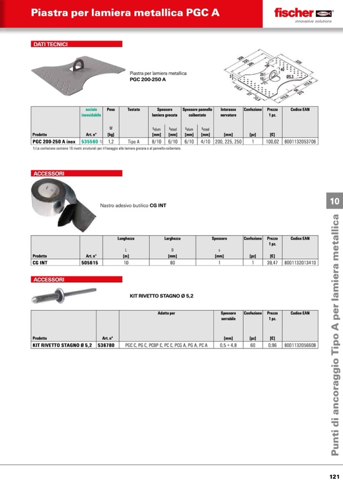 1) La confezione contiene 16 rivetti strutturali per il fissaggio alla lamiera grecata o al pannello coibentato.