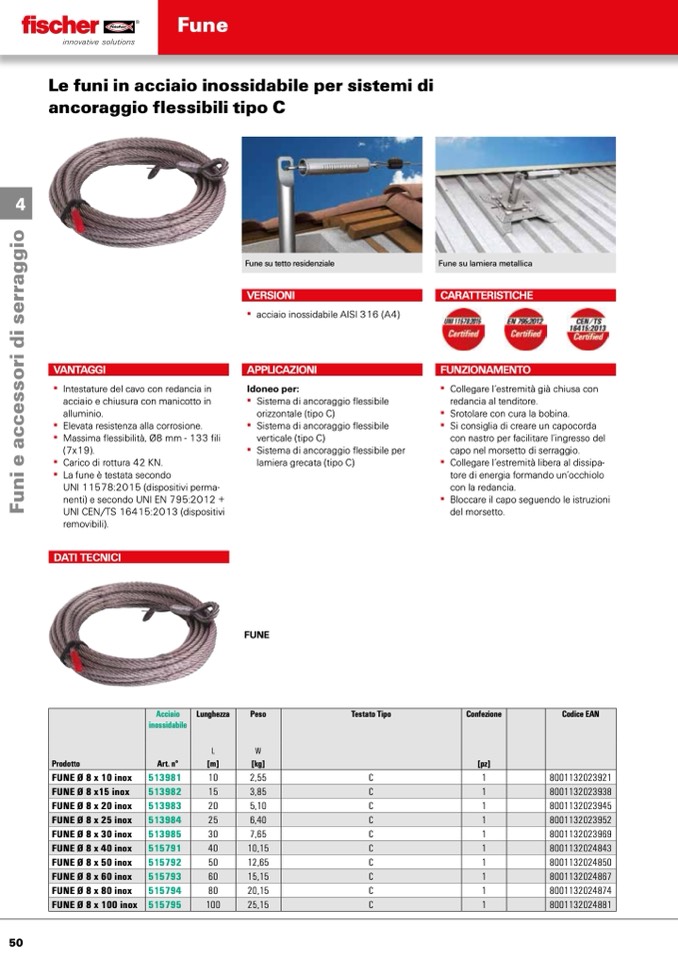 FUNE Ø 8 x 50 inox