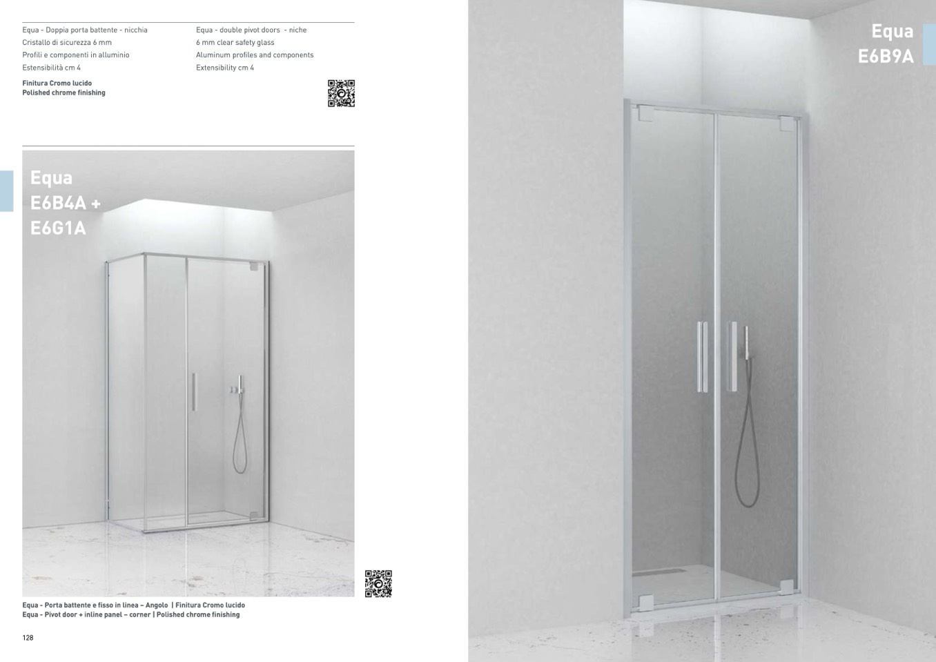 Equa - Porta battente e fisso in linea – Angolo | Finitura Cromo lucido