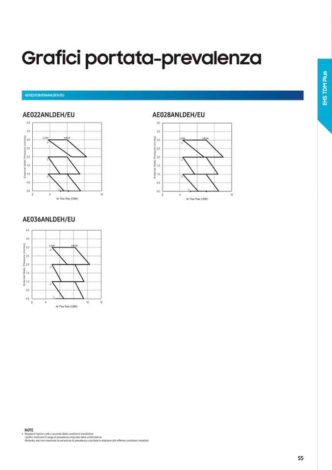 I grafici mostrano il range di prevalenza misurato delle unità interne.