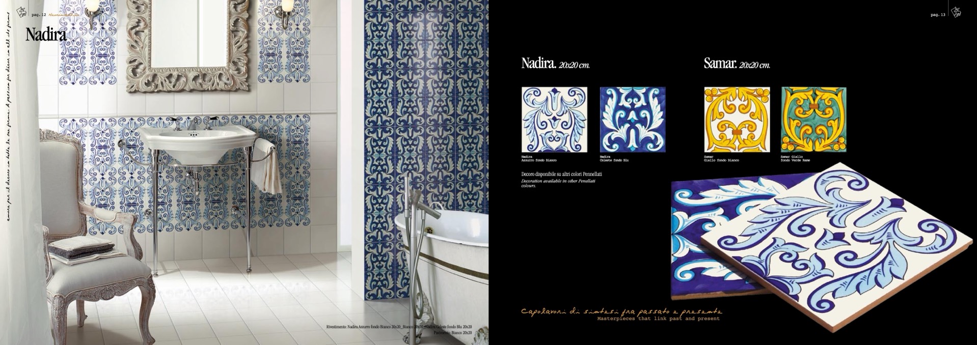 Rivestimento: Nadira Azzurro fondo Bianco 20x20_Bianco 20x20_Nadira Celeste fondo Blu 20x20
