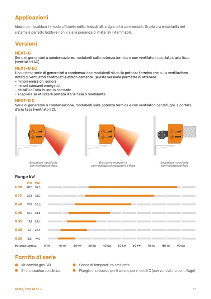 Serie di generatori a condensazione, modulanti sulla potenza termica e con ventilatori a portata d’aria fissa