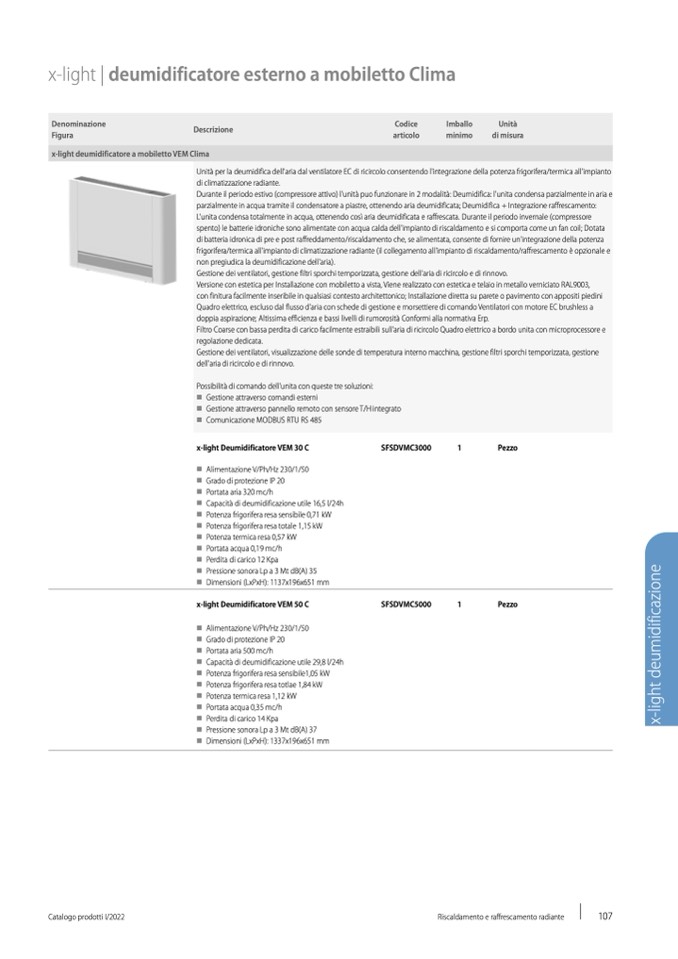x-light deumidificatore a mobiletto VEM Clima