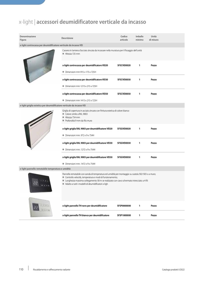 x-light controcassa per deumidificatore verticale da incasso VEI
