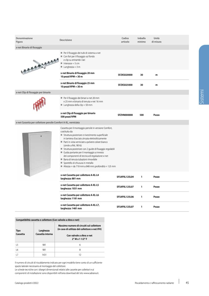 Compatibilità cassetta e collettore (Con valvole a sfera x-net)