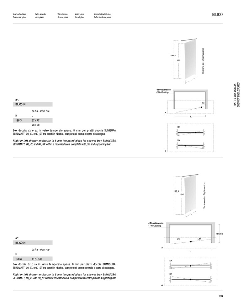 Box doccia dx o sx in vetro temperato spess. 8 mm per piatti doccia SUMISURA,