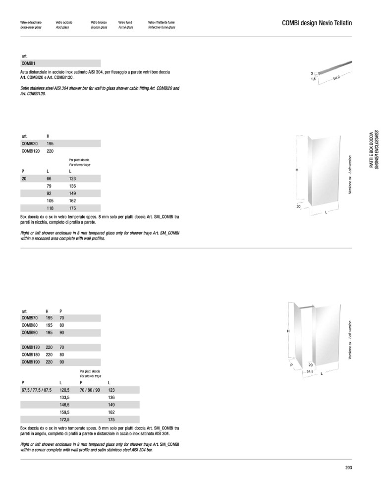 Right or left shower enclosure in 8 mm tempered glass only for shower trays Art. SM_COMBI