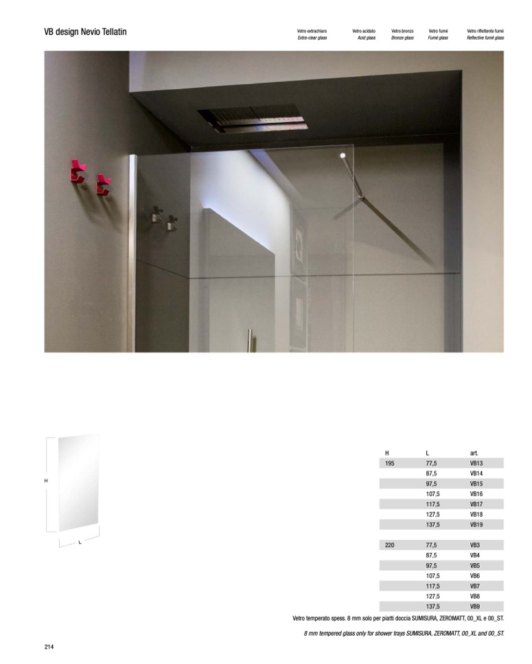 8 mm tempered glass only for shower trays SUMISURA, ZEROMATT, 00_XL and 00_ST.
