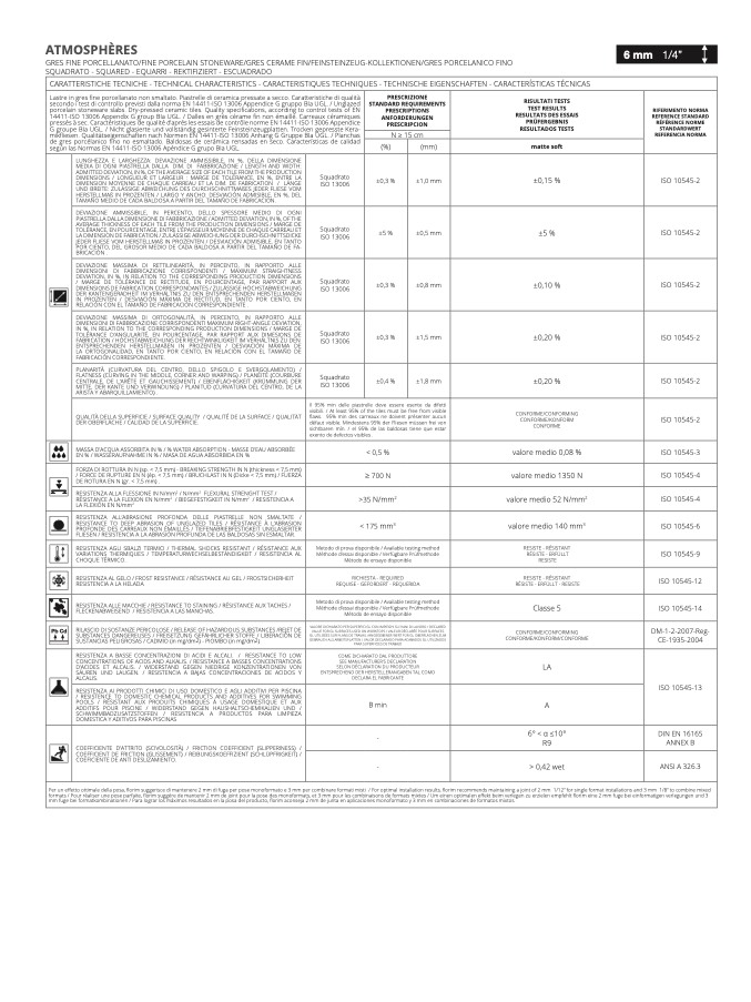 CARATTERISTICHE TECNICHE - TECHNICAL CHARACTERISTICS - CARACTERISTIQUES TECHNIQUES - TECHNISCHE EIGENSCHAFTEN - CARACTERÍSTICAS TÉCNICAS
