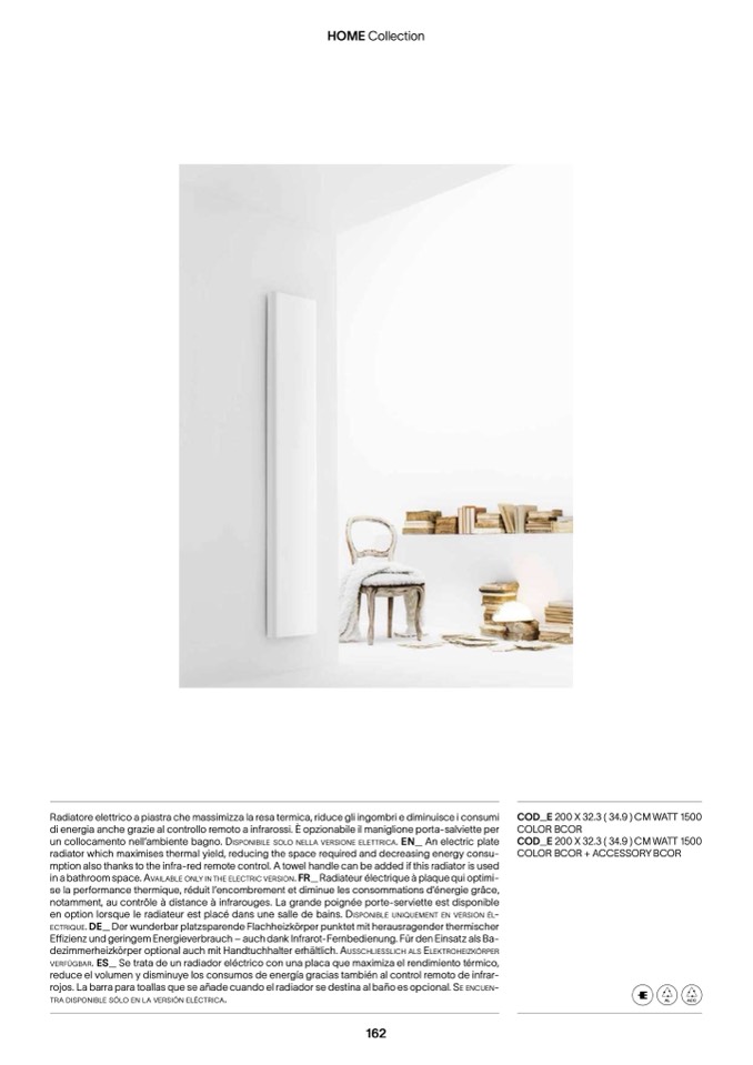un collocamento nell’ambiente bagno. Disponibile solo nella versione elettrica. EN_ An electric plate