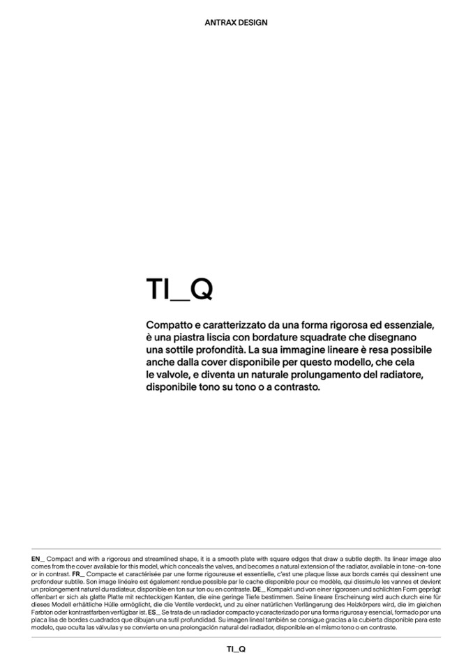 Farbton oder kontrastfarben verfügbar ist. ES_ Se trata de un radiador compacto y caracterizado por una forma rigurosa y esencial, formado por una