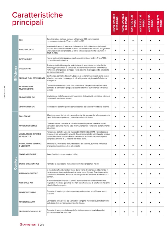 ficazione, turbo e silence, consentono al climatizzatore di disporre