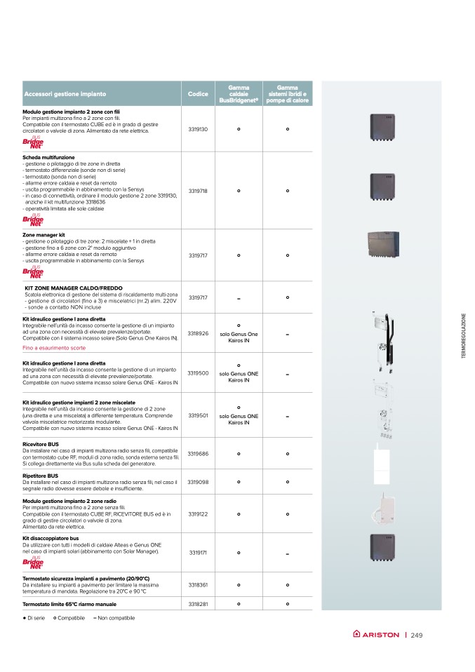 - in caso di connettività, ordinare il modulo gestione 2 zone 3319130,