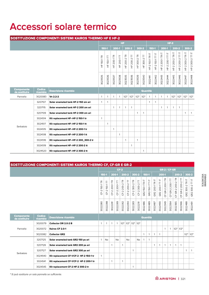 * Si può sostituire un solo pannello se sufficiente.