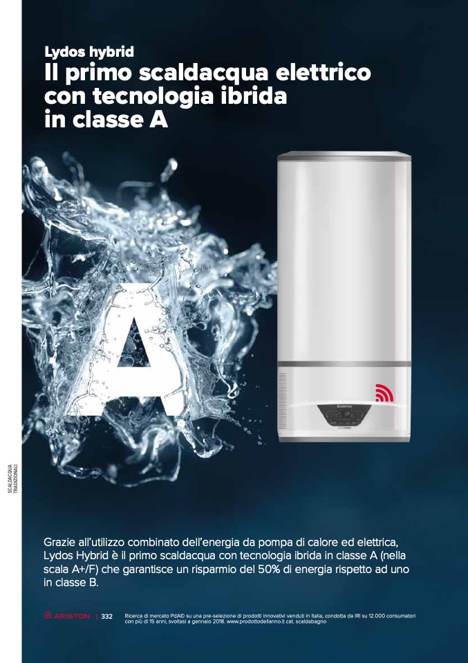 Lydos Hybrid è il primo scaldacqua con tecnologia ibrida in classe A (nella