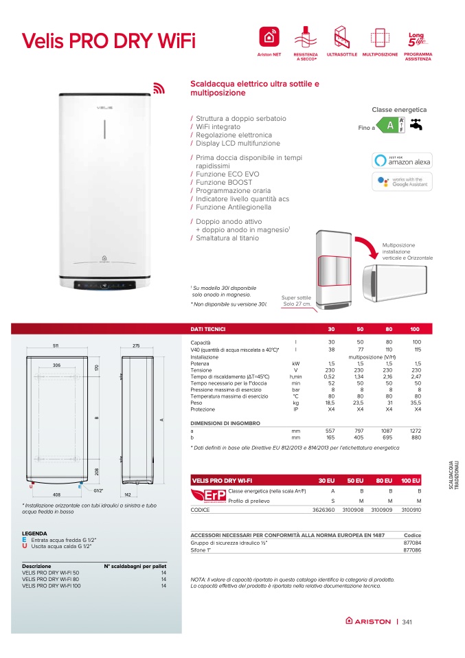 * Dati definiti in base alle Direttive EU 812/2013 e 814/2013 per l’etichettatura energetica