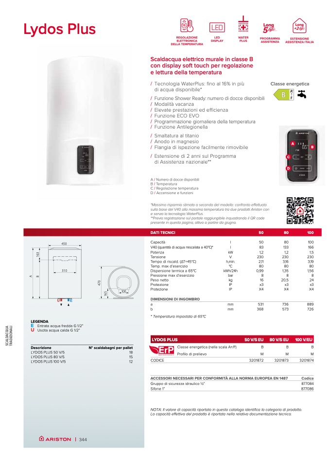 V40 (quantità di acqua miscelata a 40°C)*