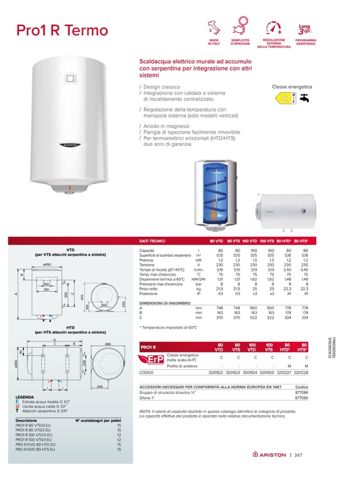 NOTA: Il valore di capacità riportato in questo catalogo identifica la categoria di prodotto.