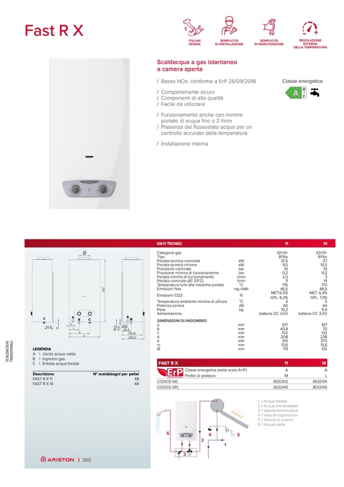 A \ Uscita acqua calda