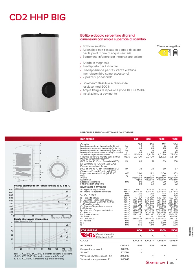 Potenza scambiabile con l’acqua sanitaria da 10 a 45 °C