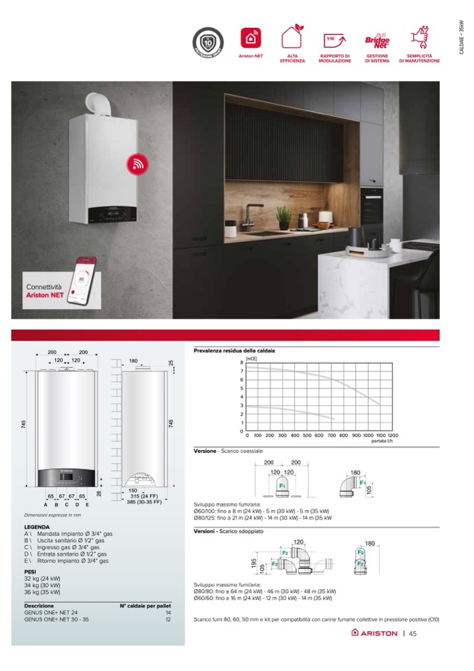 Ø80/125: fino a 21 m (24 kW) - 14 m (30 kW) - 14 m (35 kW