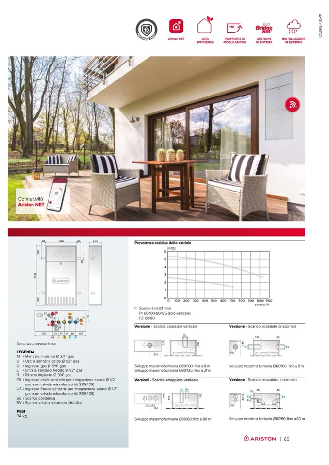Sviluppo massimo fumi/aria Ø80/80: fino a 80 m