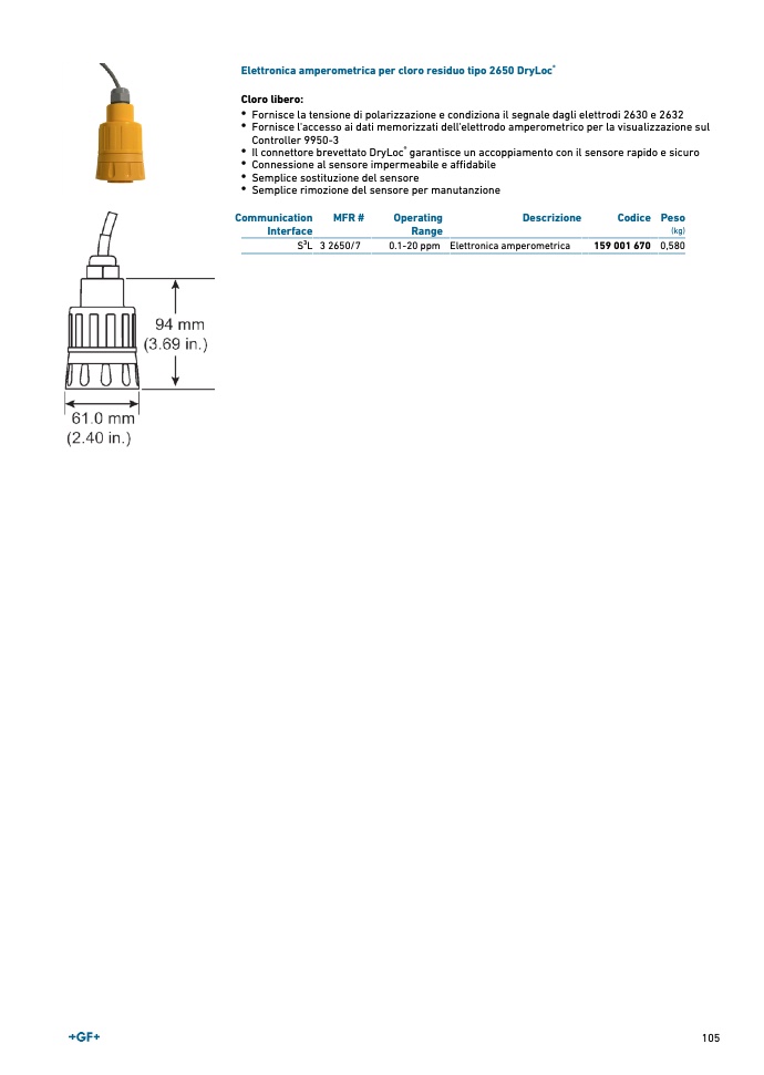 Elettronica amperometrica per cloro residuo tipo 2650 DryLoc