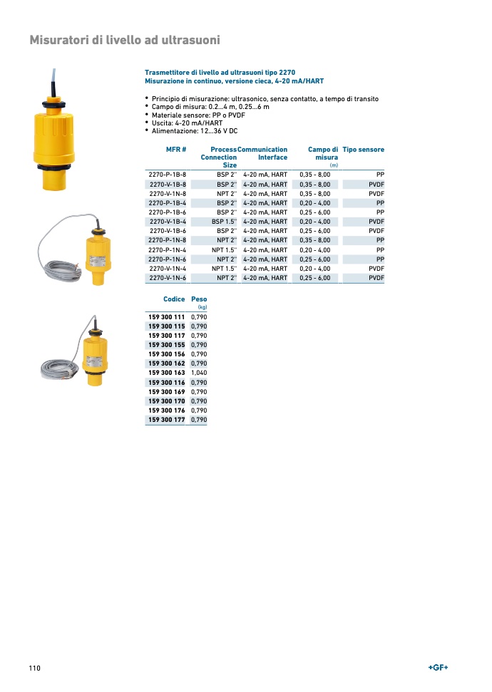 Trasmettitore di livello ad ultrasuoni tipo 2270