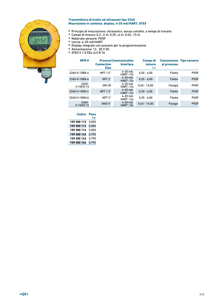 Trasmettitore di livello ad ultrasuoni tipo 226